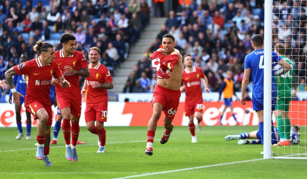 ក្រុមបាល់ទាត់ហង្សក្រហម Liverpool ក្រោមការដឹកនាំរបស់គ្រូបង្វឹកលោក Arne Slot បានយកឈ្នះ Leicester City FC ក្នុងលទ្ធផល ០-១ នៅកីឡដ្ឋាន King Power ស៊ុតបញ្ចូលទីដោយ Trent Alexander-Arnold ពានរង្វាន់លីគកំពូលអង់គ្លេស Premier League រដូវកាល ២០២៤-២៥ សប្តាហ៍ទី៣៣។